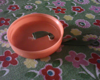 Os pregos, usei para os carretéis (porque ficam escondidos) e os parafusos que são mais bonitinhos, deixei à mostra. Há... as tampinhas dos potes furei para amarrar a fitinha de cetim, assim ficam mais charmosos.