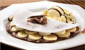 Recheio de Banana-da-terra e Queijo Coalho: Descasque 4 bananas-da-terra e corte-as ao meio no sentido do comprimento. Numa frigideira, aqueça 1 colher (sopa) de manteiga e frite as bananas. Com 200 g de queijo coalho fatiado, 1/2 xícara (chá) de açúcar e 1 colher (chá) de canela em pó, recheie as tapiocas: coloque as fatias de queijo e por cima a banana. Polvilhe com o açúcar e a canela. Dobre e sirva quente.